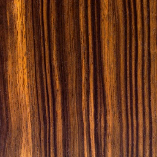 Das sehr harte Makassar zählt zu den farbigen Ebenhölzern. Sein elegantes dunkles Furnierbild hat einen graubraunen bis rotbraunen Grundton mit dunkelbraunen bis schwarzen Farbstreifen. Die glatten und auffallend glänzenden Flächen erhalten somit eine ausgeprägt streifige Struktur. Dunkle mineralische Inhaltsstoffe sind gelegentlich auf den Seitenflächen in den Porenrillen zu erkennen.