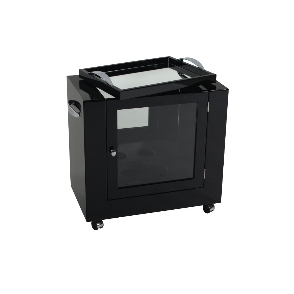 This very elegant, Cubist Art Deco Bar Cart runs on rollers to the desired location. The back is mirrored and the tray is removable. It is perfect for serving.