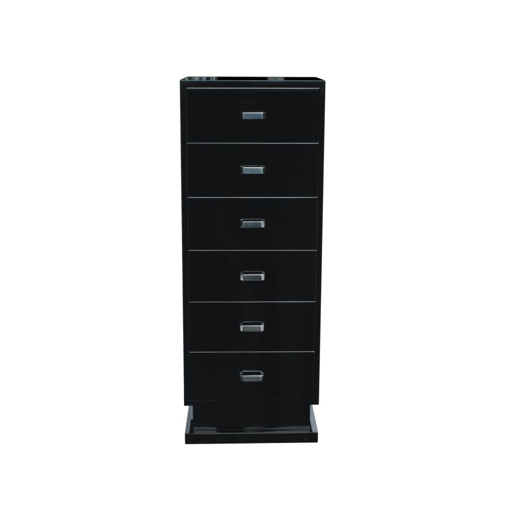 Clean looking Art Deco highchest. 7 drawers and 1. High gloss black with handles of your choice.