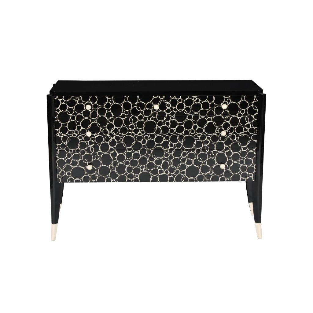Elegant Art Deco dresser with elaborate inlays in faux ivory with matching handles. Decorative pattern in style of the famous J.E. Ruhlmann.